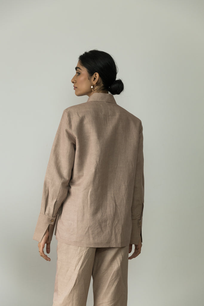 Description: This versatile staple is elevated with unique design details. It's tailored with loop buttons at the waist to cinch the silhouette and has pleated sleeves with exaggerated cuffs. It's finished with a sharp pointed collar, and a minimal concealed placket.