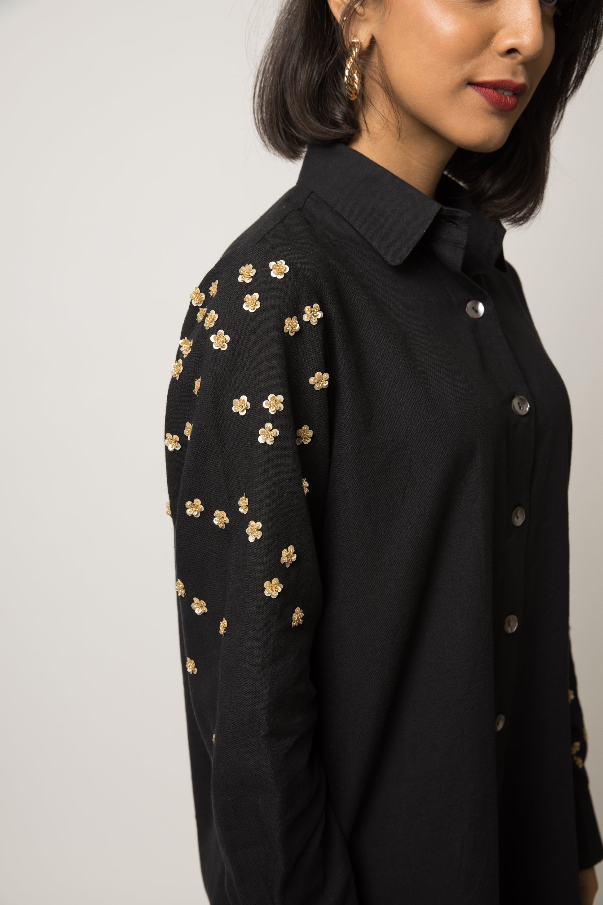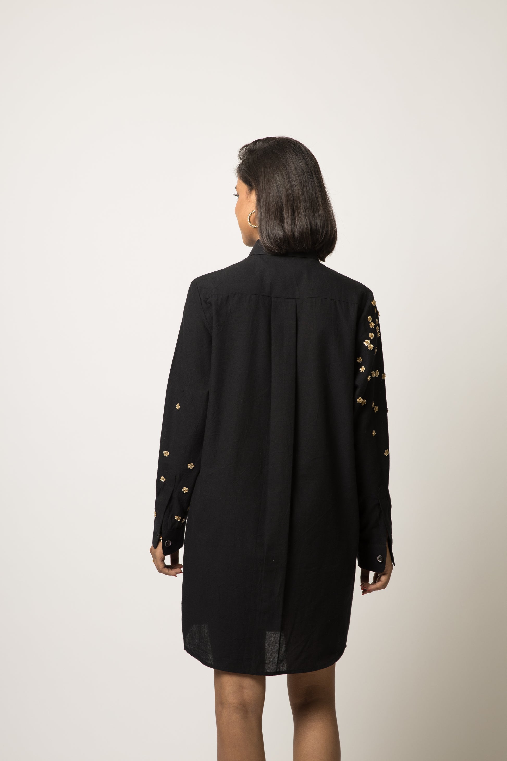Description: We looked into minimalism while designing this shirt dress with subtle floral embroidery. It's cut in a comfort fit with embellishment on both sleeves. It features a back yoke with box pleat.
