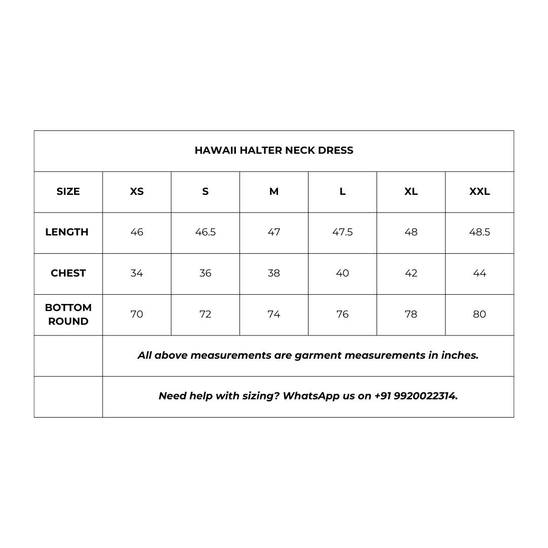 - Description: A breezy blend of elegance and island charm, this halter dress features a flattering neckline and a flowy silhouette that moves with you. Your go-to for beachside brunches or sunset strolls.