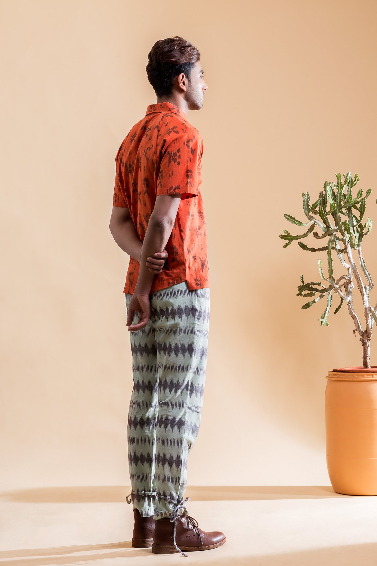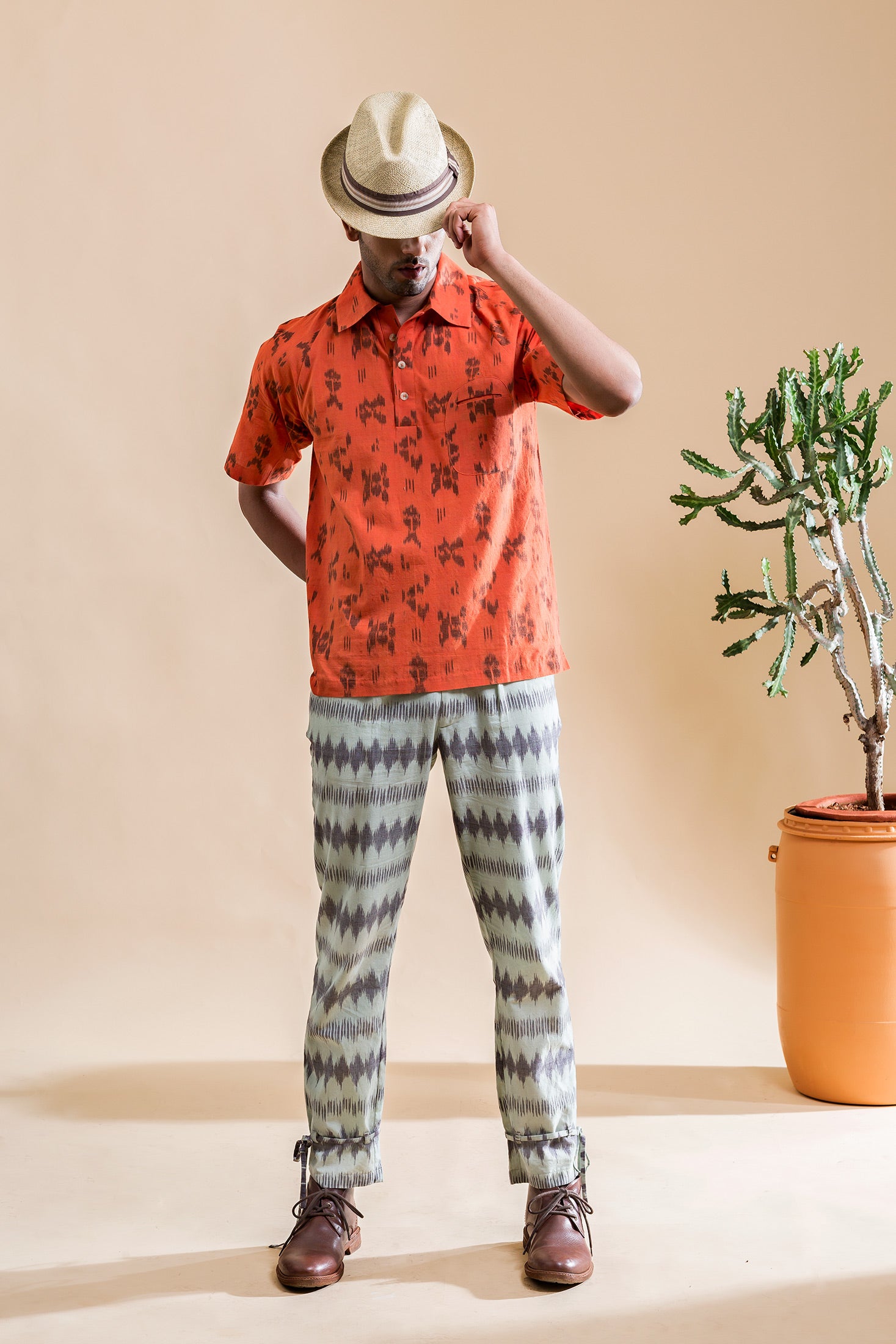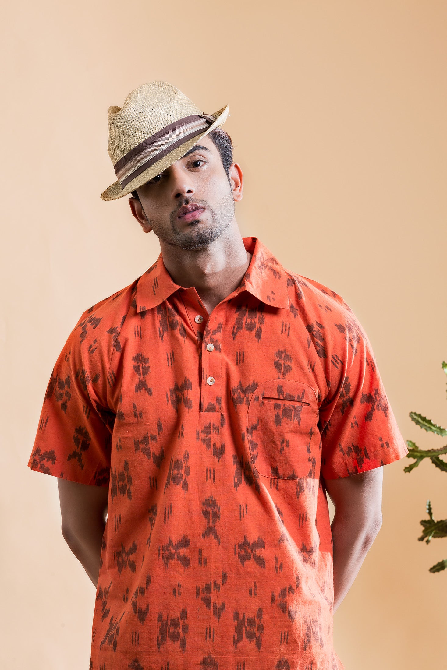 Description: A modern take on a classic t-shirt, this bold and striking ikat print t-shirt with raglan sleeves has a unique shaped top pocket.