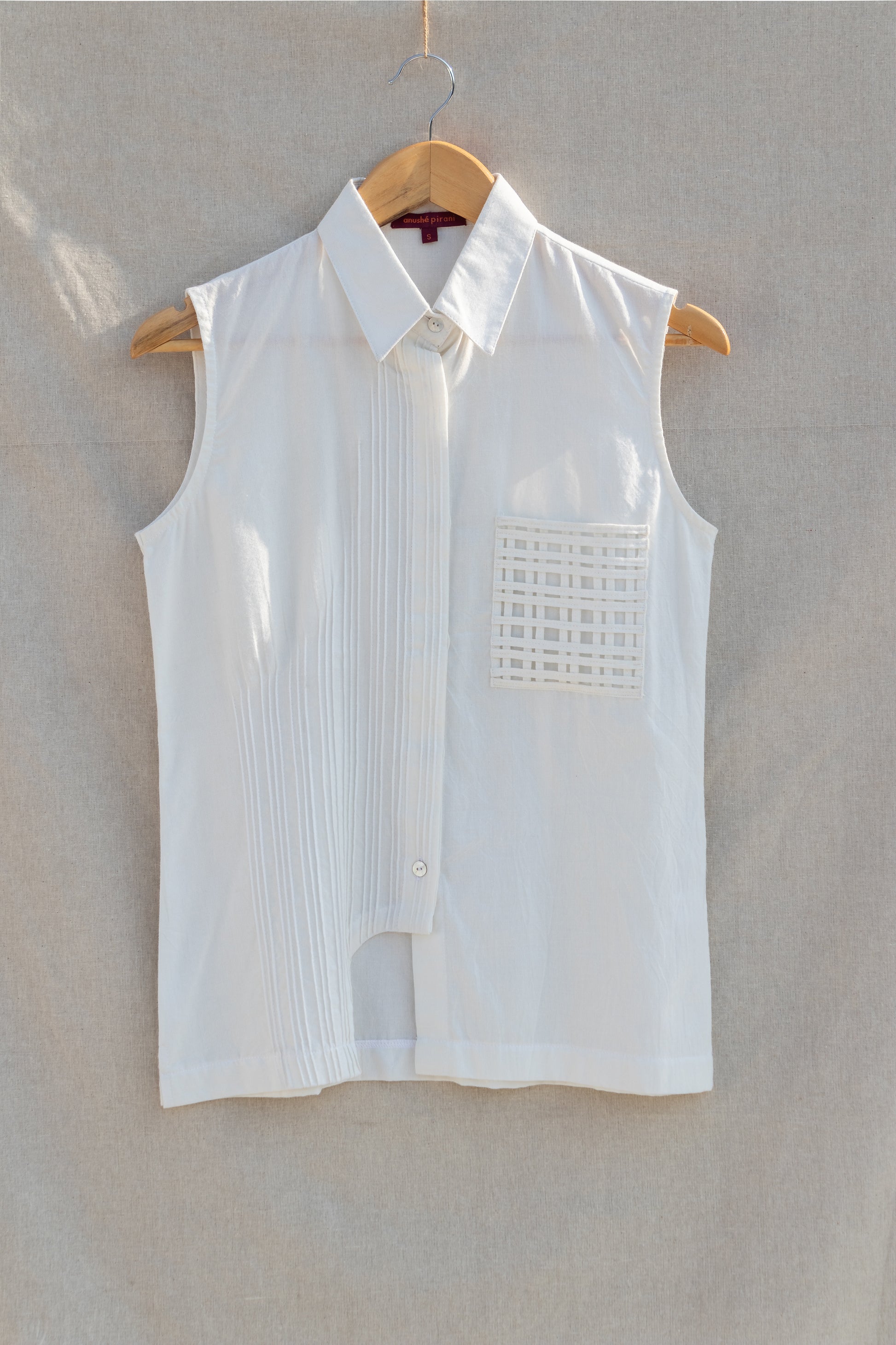 Description: The classic shirt is made from handwoven cotton and updated with fabric play; matting and pin tucks along with beautiful details.