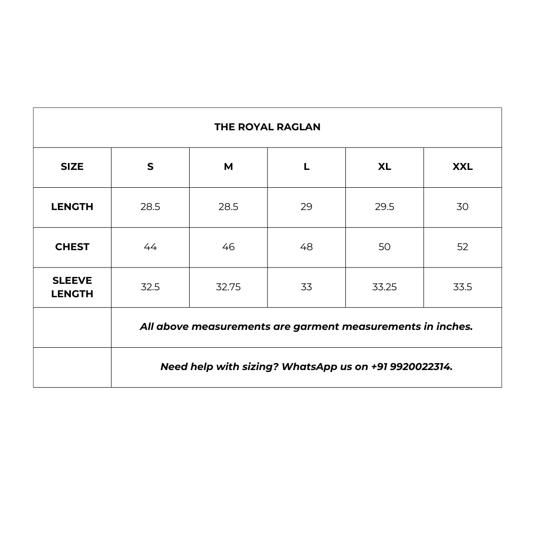 - Description: The Royal Raglan combines sporty comfort with elevated style. Featuring classic raglan sleeves and a relaxed fit, it’s designed for easy movement and a polished look. Perfect for dressing up casual days with a refined edge.